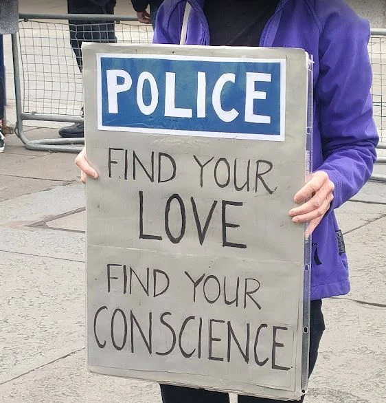 Once again, the elderly were treated with great care, consideration and respect by Met officers who clearly would have much preferred to have been performing duty somewhere else. Most arrests were accompanied by a crowd consisting of journalists and protesters with the latter applauding the arrestees and chanting ‘shame on you’ at police.