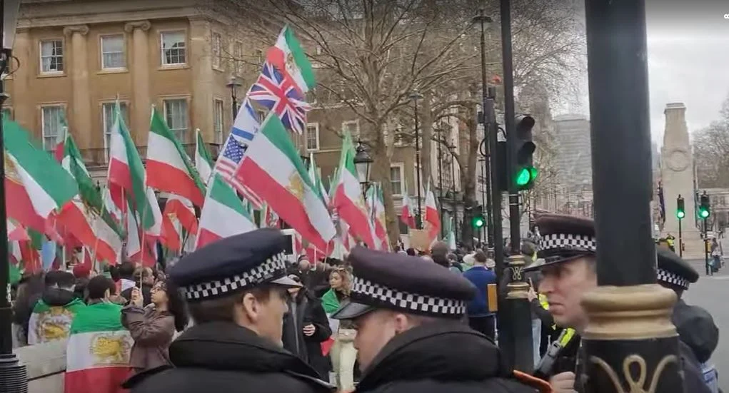 The numbers attending the Iran protest were never going to match those of the previous week when there was an organised âglobal protest.â Last week Whitehall was closed off to facilitate the significant numbers attending. On this occasion Whitehall remained open and the protesters were confined to the usual protest area opposite Downing Street and in front of the Ministry of Defence. Nevertheless, the numbers were substantial and, as on previous occasions, the rally would at its conclusion, march to the Iranian Embassy.