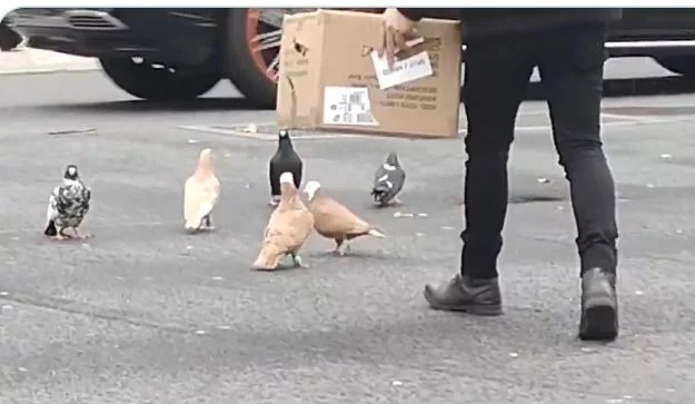 These pigeons were quite distinctive; several were brown with white patches while others also had distinctive âplumageâ as opposed to the drab colouring of those normally found around our towns and cities. To the alarm of the now intrigued protesters, observers and police, this group of pigeons seemed totally unconcerned as to the dangers posed by oncoming traffic. Somehow, they reached the centre of Whitehall which was traffic free and then continued to wander about as if unsure of exactly what they were supposed to be doing. Unlike their London cousins, these were clearly not âstreetwiseâ with  one notable exception who sat on top of a lamp post looking smugly down on proceedings.
