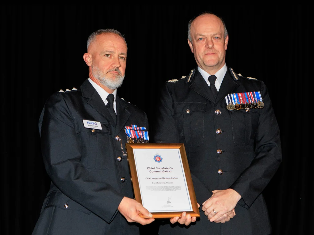 Michael Parker, who is based with Greater Manchester Police (GMP)'s Roads Policing Unit, administered CPR for nearly an hour, including 10 minutes on his own, as he waited for an ambulance to attend the scene.