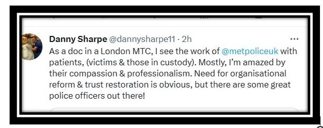 Finally, I’ll conclude with this post which was placed on Twitter in the immediate aftermath of the Baroness Casey review. Dr. Sharpe is one the UK’s leading trauma surgeons.